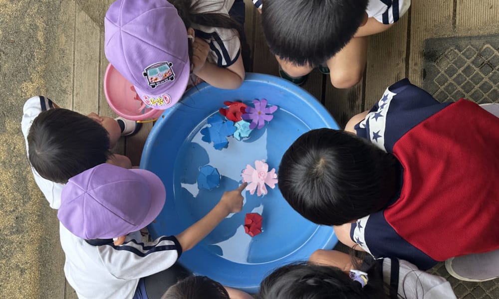 水や空気、光や音などがどのように変化するかを体験し、子どもたちの興味や関心を広げます。