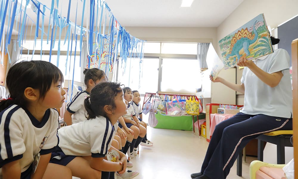 絵本や紙芝居などを多く取り入れ、