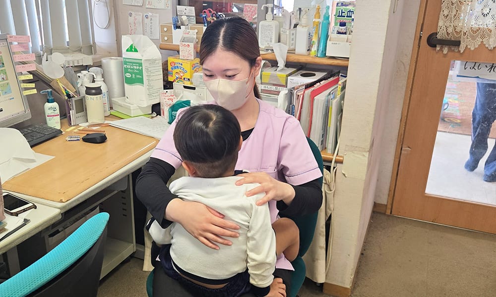 養護教諭が常勤し、子どもたちの健康管理や